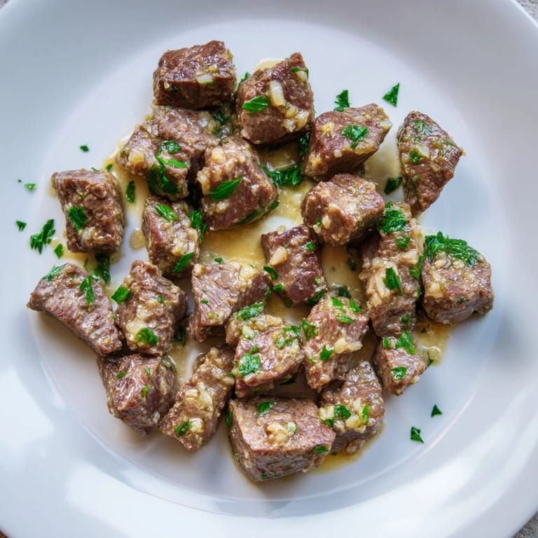 Save to Pinterest There's something about the sizzle of steak hitting hot air that makes you feel like you've cracked a code in the kitchen. I discovered these garlic-butter steak bites completely by accident one weeknight when I had a beautiful sirloin on hand but zero appetite for the usual pan-seared routine. The air fryer sat there unused, and I thought, why not? Eight minutes later, I was biting into the most tender, juicy morsels that tasted like they'd been fussed over for hours. My kitchen smelled like a steakhouse, and my family appeared from nowhere asking what was happening. That's when I knew I'd stumbled onto something special.
