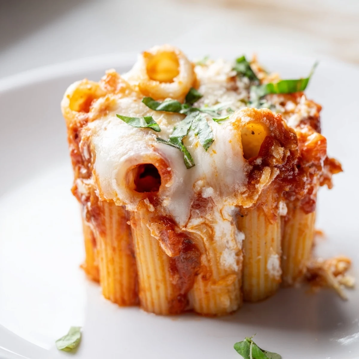 Ziti or rigatoni are ideal due to their sturdy shape, which holds the layers well inside the muffin tin.