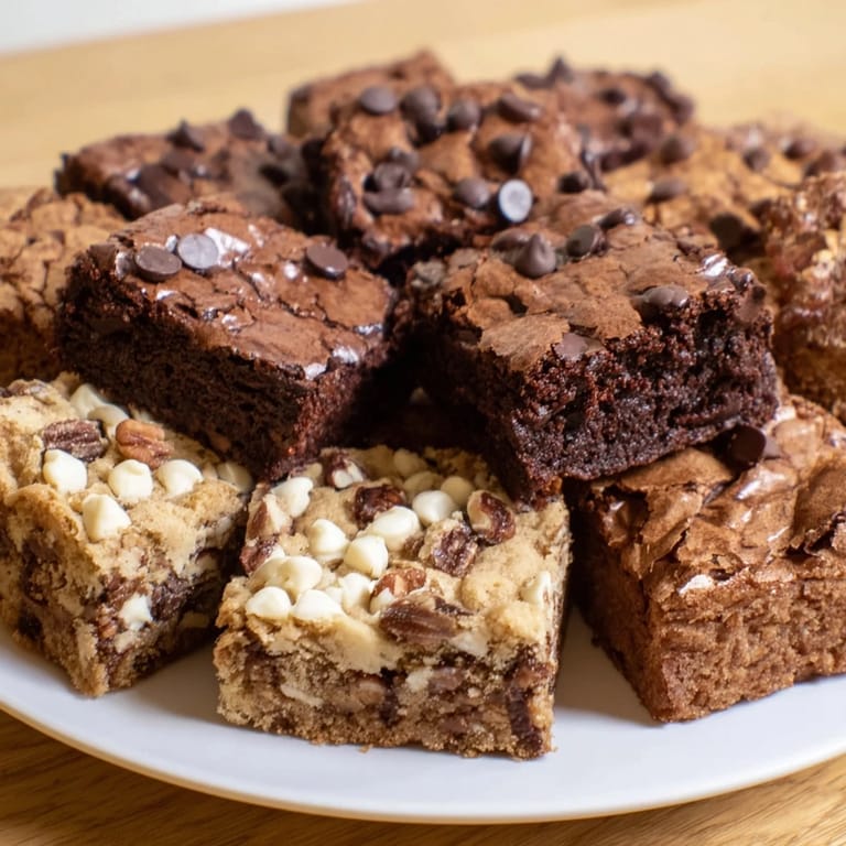 Save to Pinterest A decadent assortment of rich chocolate brownies and buttery blondies, perfect for sharing at gatherings or as a sweet treat for any occasion.