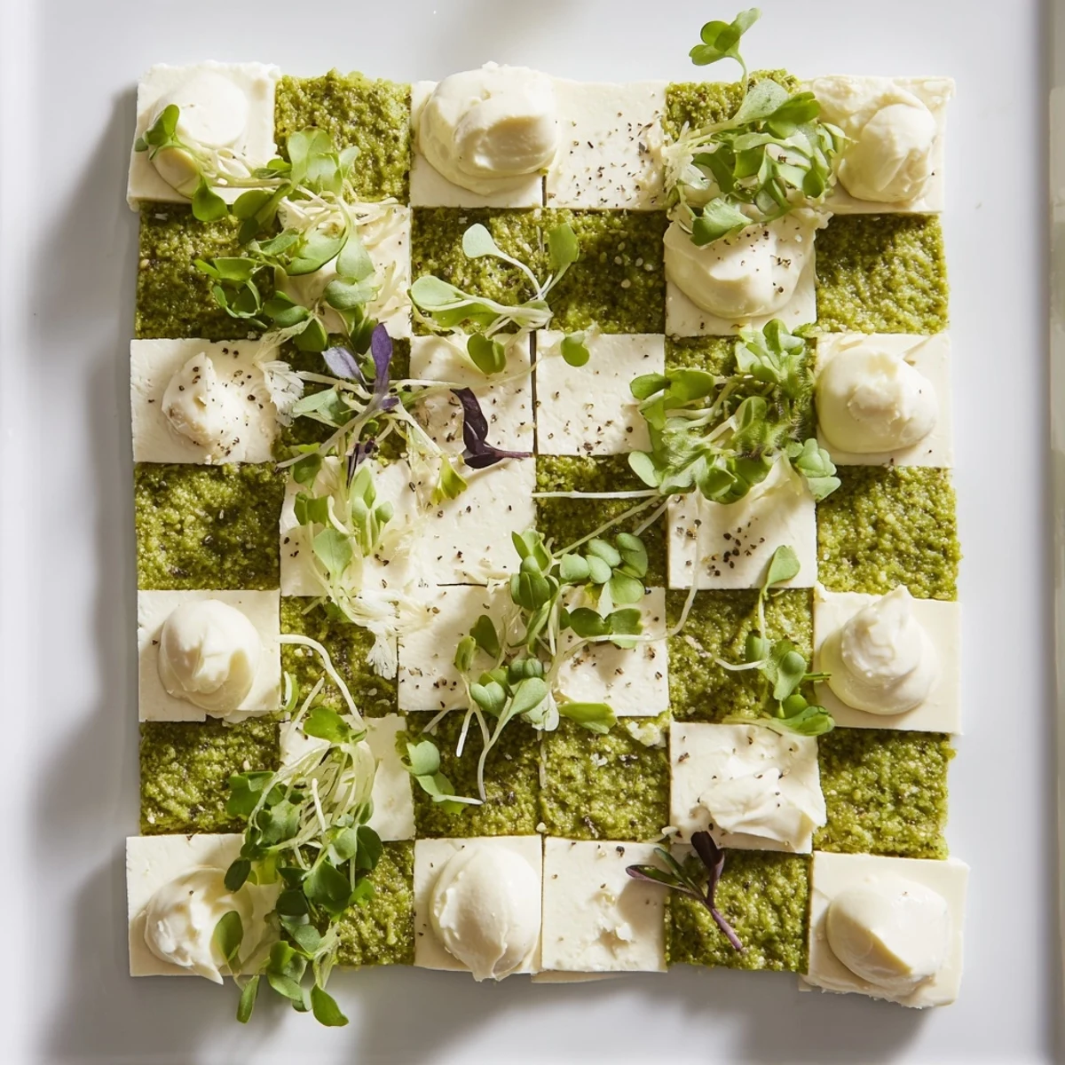 I made this for a dinner party last spring when my garden was finally exploding with fresh herbs. My friend Sarah watched me arrange the squares and said, 'This looks too beautiful to eat,' which is exactly the reaction I wanted. We ended up serving it on our best vintage platter, and people kept asking for photos before anyone dared to take the first bite. It felt less like an appetizer and more like we'd brought an art installation to the table.