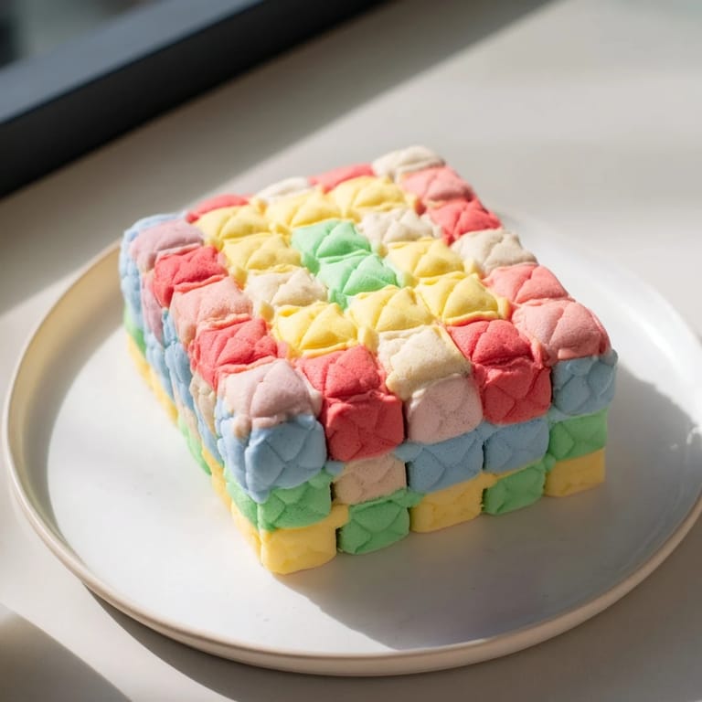 Save to Pinterest There's a moment when you place the last colored square, step back, and see this beautiful patchwork cake come together that feels like art. My daughter once said it looked like 'rainbow quilts you can eat,' and that's exactly what it is—a dessert that brings joy not just through taste, but through beauty and the story behind it.