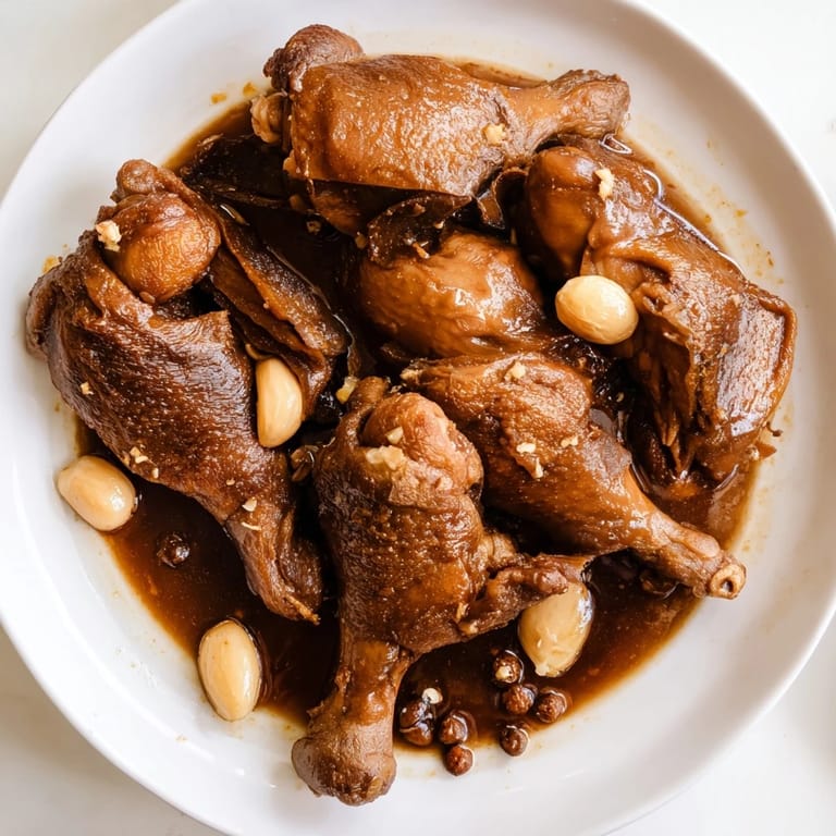 I made this for a friend who'd never had adobo before, and I watched her take that first bite and just go quiet—not because something was wrong, but because she was experiencing that moment where acidity and umami and savory depth all click together at once. She asked for the recipe before she'd even finished eating, which is always the best compliment in this house.