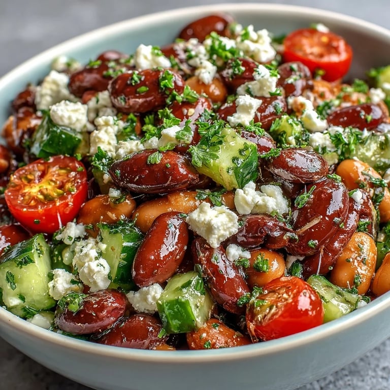 Save to Pinterest The smell hit me first, lemony and sharp, cutting through the stale air of my tiny apartment kitchen on a sweltering July afternoon. I had just returned from the farmers market with a bag full of tomatoes and a vague memory of a bean salad my neighbor had brought to a potluck. I didnt have a recipe, just the taste memory of something bright and salty. I dumped three cans of beans into a bowl, squeezed lemons until my hands were sticky, and hoped for the best.