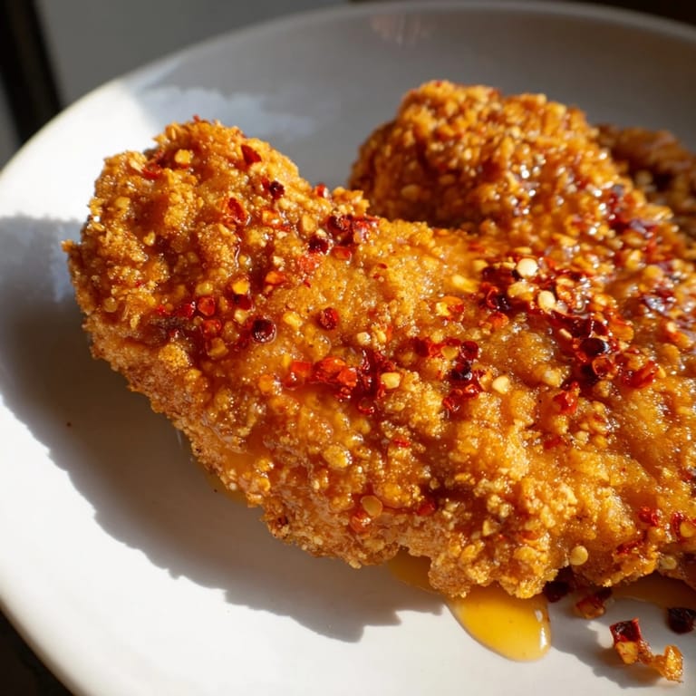 This chicken doesn't ask for much because it's already complete, but having a textural contrast makes the whole plate sing. A vinegary coleslaw cuts through the richness and cools the heat if things got spicy, while quick-pickled vegetables add snap and brightness that makes your palate reset between bites. Cornbread is the obvious choice if you want to soak up every drop of hot honey that's escaped to the plate, or if you're feeling resourceful, pile this chicken between soft bread for a sandwich that makes sandwiches worth existing.