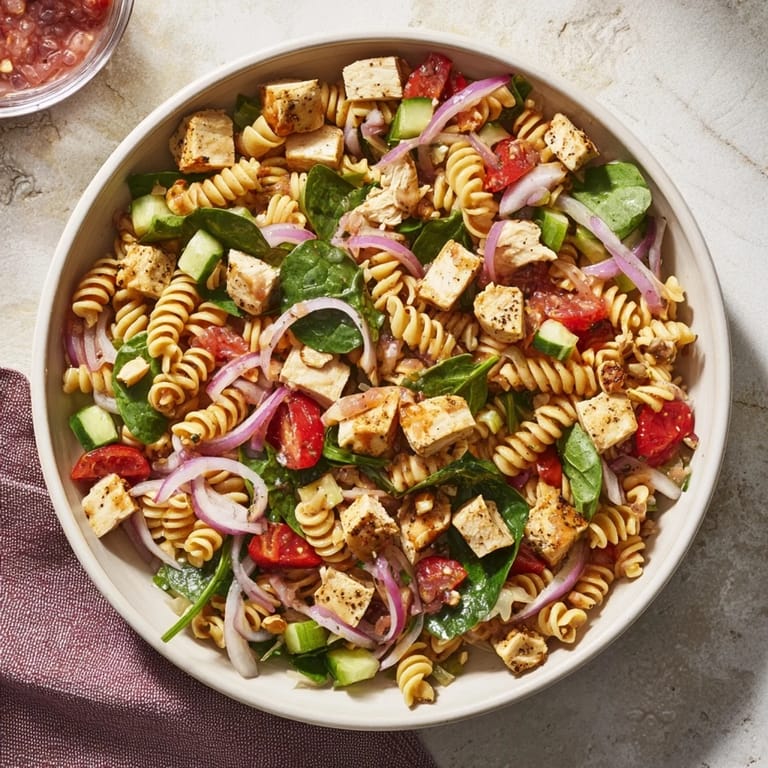 This salad is flexible enough to shift with what's in your kitchen and what season you're cooking in. In summer, I load it with extra tomatoes and cucumber because that's when they're ripe and bursting with flavor. In winter, I add dried cranberries for extra tartness and sometimes swap some of the spinach for arugula if I want something with more edge. The chicken is there as protein, but if you want to make it vegetarian, chickpeas work beautifully and actually soak up the dressing even better than meat does.