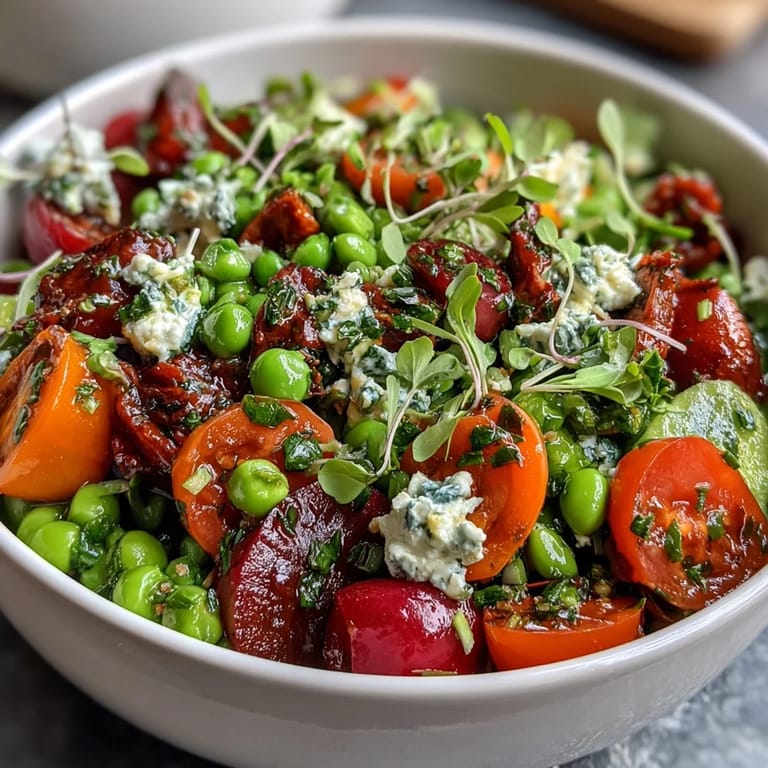 - Scatter microgreens across the empty spaces for a restaurant-quality look, sprinkle feta if you're using it, and serve immediately while everything's still crisp.